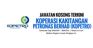 2) pemohon yang belum mendaftar hendaklah mendaftar terlebih dahulu dengan jobstreet sebelum. Koperasi kakitangan petronas berhad atau kopetro ditubuhkan lebih 36 tahun dengan bertujuan untuk menyediakan bantuan kewangan untuk kakitangan petronas, makanan & minuman di pejabat petronas, agensi pelancongan & pelancongan dan hotel. Kuala lumpur, kuala lumpur 1.139 takipçi. Koperasi kakitangan petronas berhad, also known as kopetro was incorporated under the cooperative acts (revised 1993) on 30th october 1980 with a noble intention and objective of providing financial aids for petronas staff. Kerja kosong koperasi kakitangan petronas berhad (kopetro) | pihak kakitangan petronas berhad (kopetro) ingin mempelawa kepada seluruh rakyat malaysia yang berkelayakan dan berminat untuk segera membuat permohonan bagi mengisi jawatan kosong seperti berikut. Kuantum kenaikan tahunan dan bonus prestasi untuk tahun 2014, untuk kakitangan. As a public listed company, petronas gas berhad (pgb) is continuously focusing on creating value to our stakeholders. Koperasi kakitangan bank rakyat berhad. Koperasi kakitangan petronas berhad kopetro kedudukan : Cara memohon (klik di bawah). Jawatan kosong terkinijawatan kosong terkini pilihankerja swasta. İşletme malzeme tedariği ve ekipman. Granted with an allocation of rm ten thousand and a team seconded by the petronas personnel department, it was tasked to launch and to maintain a cooperative that provides financial aid to its.