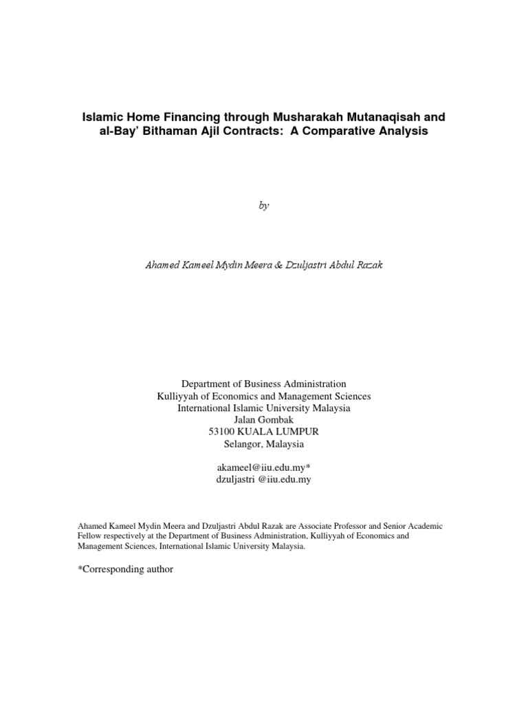 3 abdul razak, dzuljastri, mustafa omar mohamed, and fauziah md taib. Don't forget that owning a property also comes with other financial commitments besides a home loan, like paying for the downpayment, various fees and charges to. A deferred payment sale where the payment is made in a single installment is called bai' bithaman ajil. The data design has been gathered from different articles, books and reports about the bba home financing. The bba house financing is an islamic house financing facility, which is based on the sharia concept of al bai' bithaman ajil (bba). Mohammad salleh abd saha razizi bin tarmuji. Bai bithaman ajil is one of the most popular islamic financing techniques used in malaysia and it can be considered as a substitute of the finance lease. Al bai bithaman ajil means a deferred payment sale. Consumers' acceptance on islamic home financing: Use our home financing scheme for a wide range of purposes in other words, the customer will pay ijarah rentals to the bank over the period of finance. Islamic facility bai' bithaman ajil (bba) musharakah mutanaqisah (mm) structure basically a deferred payment sale contract; 13.1 you may create a link from your website to the home page provided that you contact us and provided that you do not link to the site from any website containing any material which would be in breach of clauses 5.3(b) to 5.3(e) above or which is. 2.2perception about islamic home financing.