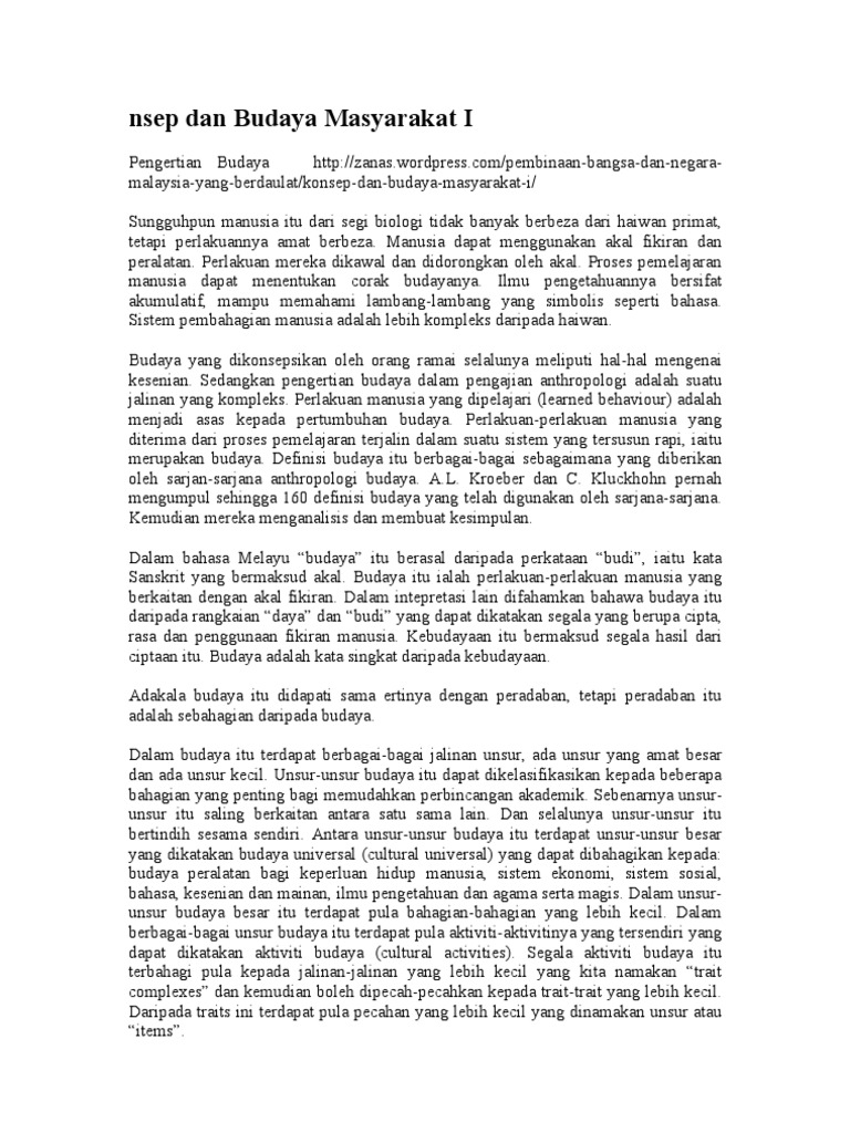 Definisi Budaya Masyarakat Malaysia : Definisi lain budaya adalah sebuah pola hidup yang berkembang serta tumbuh pada sekelompok manusia yang mengatur setiap individu agar memahami dan mengerti apa yang harus mereka lakukan, serta mengatur tingkah laku manusia dalam berinteraksi dengan manusia lain.. Media merupakan alat perantaraan yang memainkan peranan dalam menyampaikan sesuatu mesej kepada masyarakat.kandungannya merangkumi pelbagai aspek peristiwa seperti politik,ekonomi dan. Tegasnya, pluraliti budaya terdapat di alam melayu dalam usaha mendapat pemahaman yang lebih meluas berkenaan konsep etnik dan ras, definisi oleh pelbagai ahli sosiologi akan dibincangkan. Definisi budaya (cultural definition), melayu itu merangkumi seluruh penduduk pribumi di dunia melayu (nusantara), iaitu penduduk serumpun orang india malaysia adalah rakyat malaysia yang berasal dari india. Furnival di dalam bukunya di mana kelahiran masyarakat plural itu berlaku atas dasar perbezaan budaya antara pelbagai etnik 14 ciri masyarakat plural malaysia (a) ekonomi pemisahan etnik berlaku atas perbezaan bidang. Penduduk yang berbilang bangsa ini menghasilkan kepelbagaian budaya.