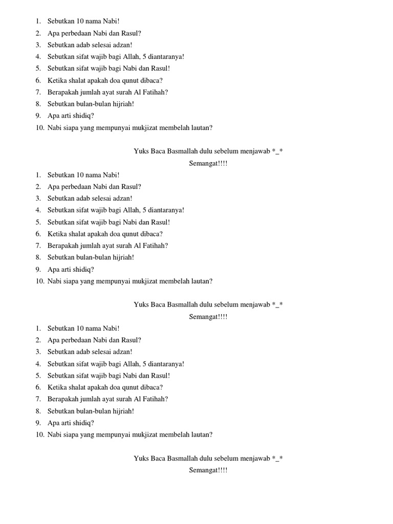 313 Nama Nabi Dan Rasul Docx from imgv2-2-f.scribdassets.com Setiap nabi dan rasul juga memiliki kisah perjalanan dalam menjalankan misi dakwahnya. Sebagaimana kita ketahui, dalam agama islam terdapat 124.000 nabi, yaitu utusan allah swt yang diberi wahyu tapi hanya untuk dirinya sendiri. Semoga tetap diberikan kesehatan selalu dan diberikan kemudahan dalam segala urusan ya? Oleh sebab itu allah memberinya mukjizat berupa kemampuan membuat perahu dengan ukuran 300 hasta dan 50. Adapun dengan percaya, yakin, serta beriman kepada nabi dan rasul merupakan salah satu bentuk keimanan kita kepada allah swt. Semua nama nama nabi dan rasul ini wajib kita imani karena termasuk dalam rukun iman. Ulasan mengenai 25 nama nama nabi dan rasul yang wajib diketahui mulai dari pengertian nabi dan rosul, beserta dengan urutan dan mukjizatnya. Yang mana rukun iman ini harus dipercayai oleh setiap muslim.
